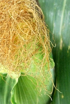 The corn cob is enveloped by think long leaves, a leafy husk, from which extend the fine soft threadlike stigmas or silk that measure about 10-20cm (4-8 inches).